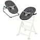 O assento adaptável 2 em1 pode ser instalado na cadeira de refeição Timba, para garantir a diversão durante as refeições em família, antes de ser colocado novamente no suporte da espreguiçadeira.